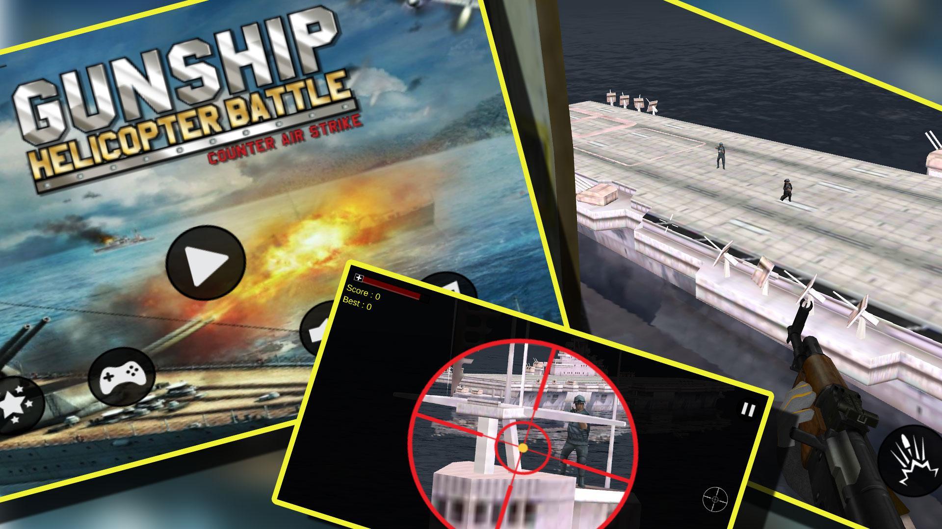 Gunship Battle:它的良好FPS海军枪手游戏,您正在反击战争中。我们的海军船附近有敌人入侵,您的任务是检查和摧毁敌方军舰。让我们在飞行的眼镜蛇武装直升机的帮助下,用您的射击技巧射击海军载体船。